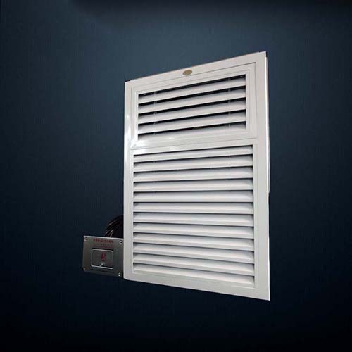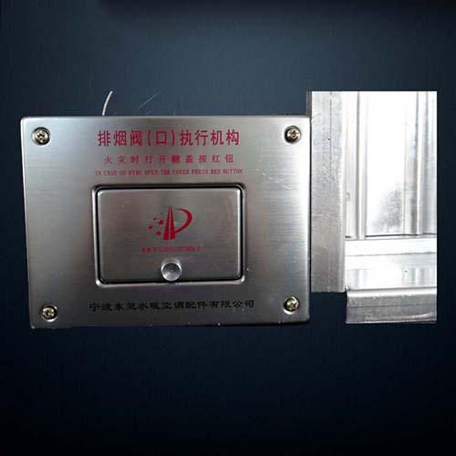 適用在建筑物的過道或防煙前室、無窗房間的排煙系統(tǒng)中,安裝在墻上或頂板上,可作排煙口或防煙系統(tǒng)的加壓送風(fēng)口?;馂?zāi)發(fā)生時,通過電訊號DC24V 或手動使閥門打開,進行排煙或為防煙前室送風(fēng),在煙氣溫度達到 280℃時,重新將閥門關(guān)閉,隔斷氣流。