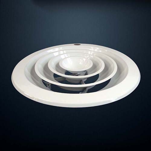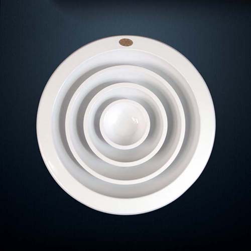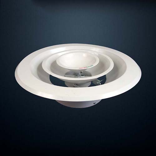 1.圓形散流器為多層錐體結(jié)構(gòu),一般安裝于冷暖房的天花板上,其吹出氣流屬貼附型,具有內(nèi)部誘導(dǎo)性佳、送風(fēng)溫差大、吹出氣流均勻、能抑制體感氣流等特點(diǎn)。